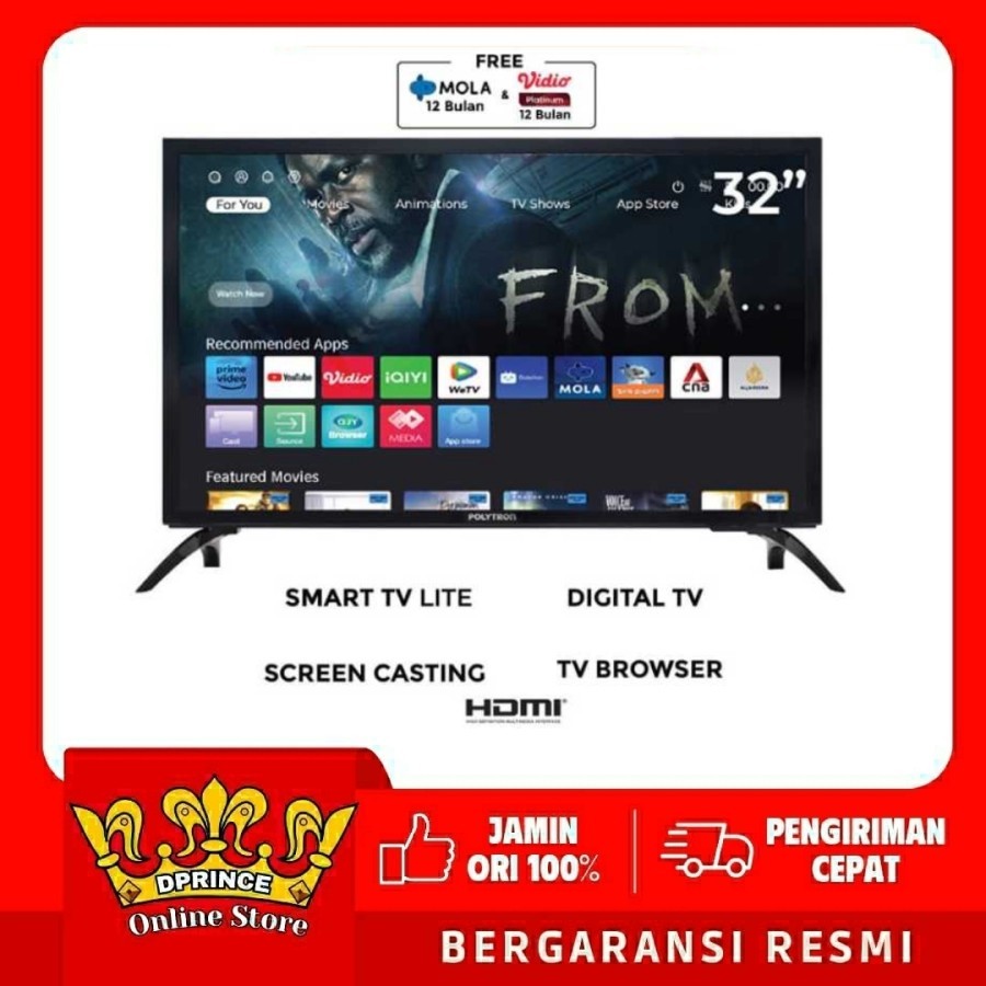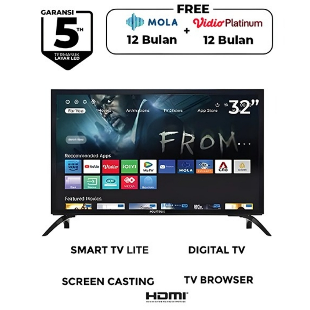 POLYTRON SMART TV LED 32 INCH PLD 32CV1869 FREE MOLA & VIDIO