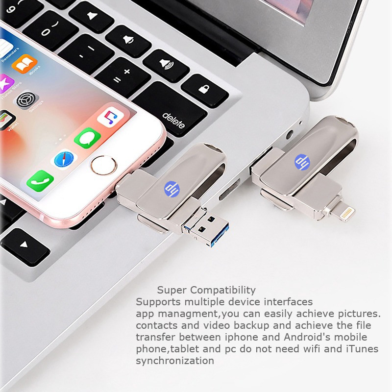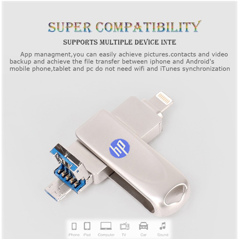 FlashDisk 3-in-1 HP metal flash drive USB 3.0 kapasitas besar cocok untuk IP/Android/Micro/PC
