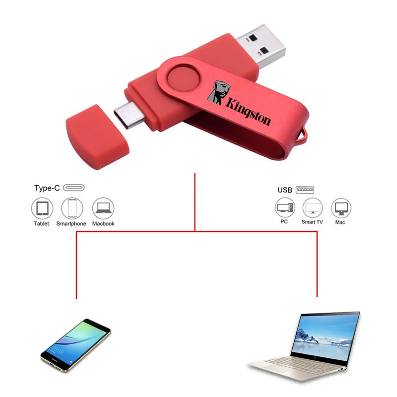Kingston Flashdisk 3in1 OTG USB 2.0 1TB 2TB Dapat Diputar USB Type C Micro High Speed Pen Drive Kapasitas Besar Flash Dr
