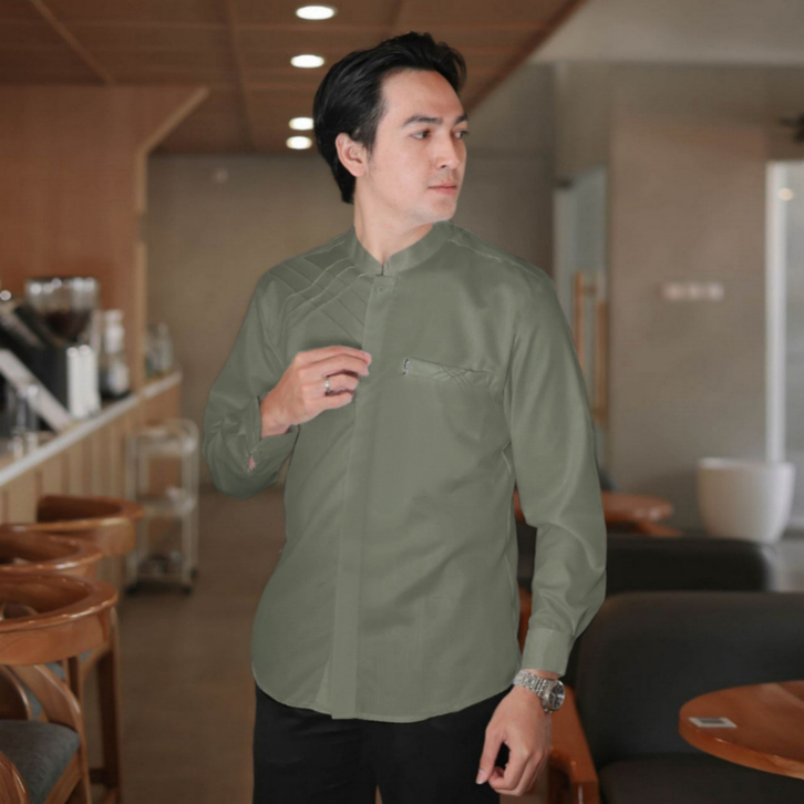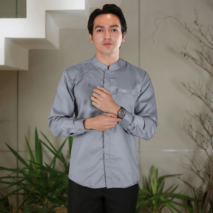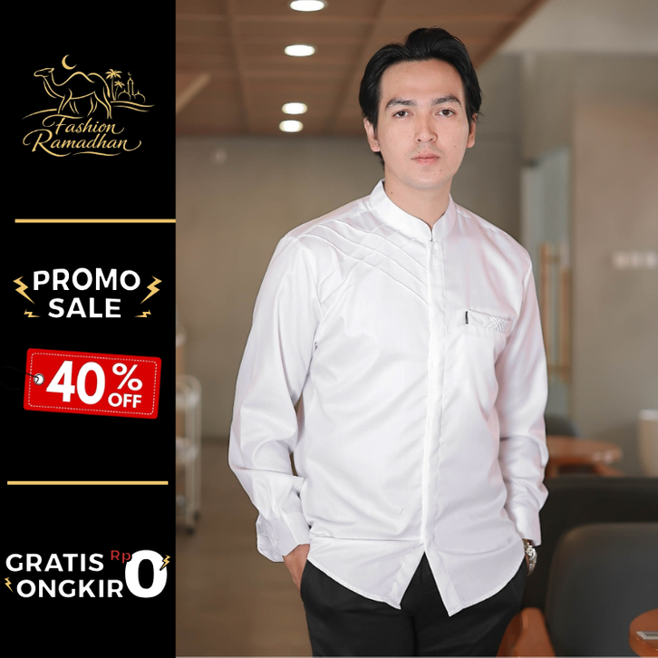 Kemeja Pria Lengan Panjang Elrumi Kemeja Pria Koko Shanghai Lengan Panjang Warna Putih