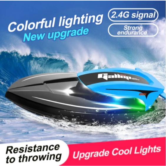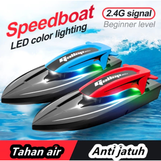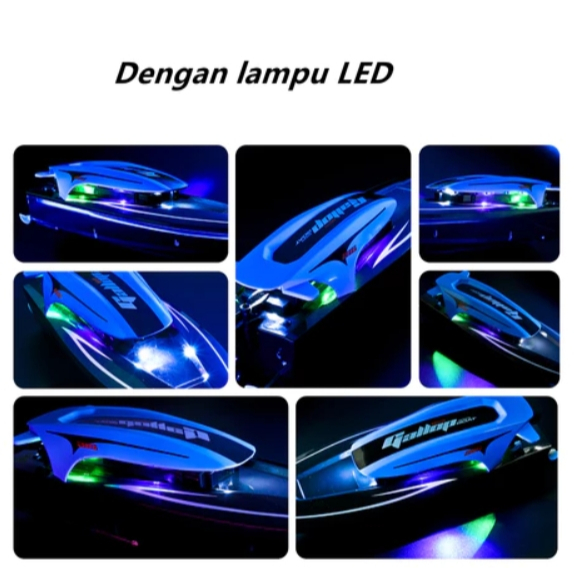 Mainan Perahu RC Berkecepatan Tinggi Tahan Air 2.4GHZ dengan Lampu LED Kecepatan hingga 20KMH