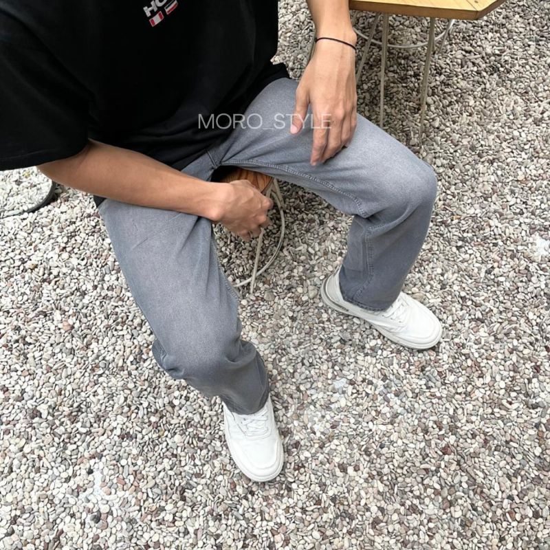Celana jeans pria baggy pants korean style oversize loose blue and black snow jeans straight kulot panjang pria
