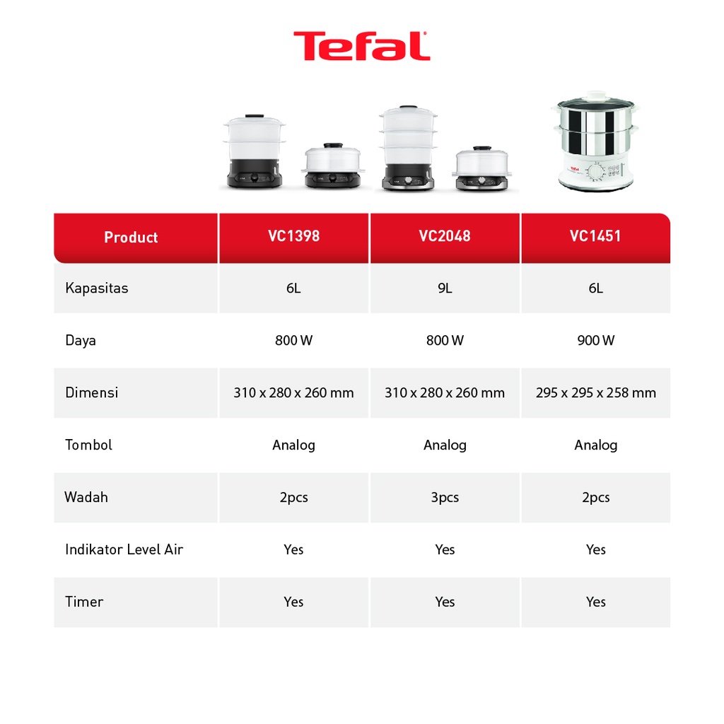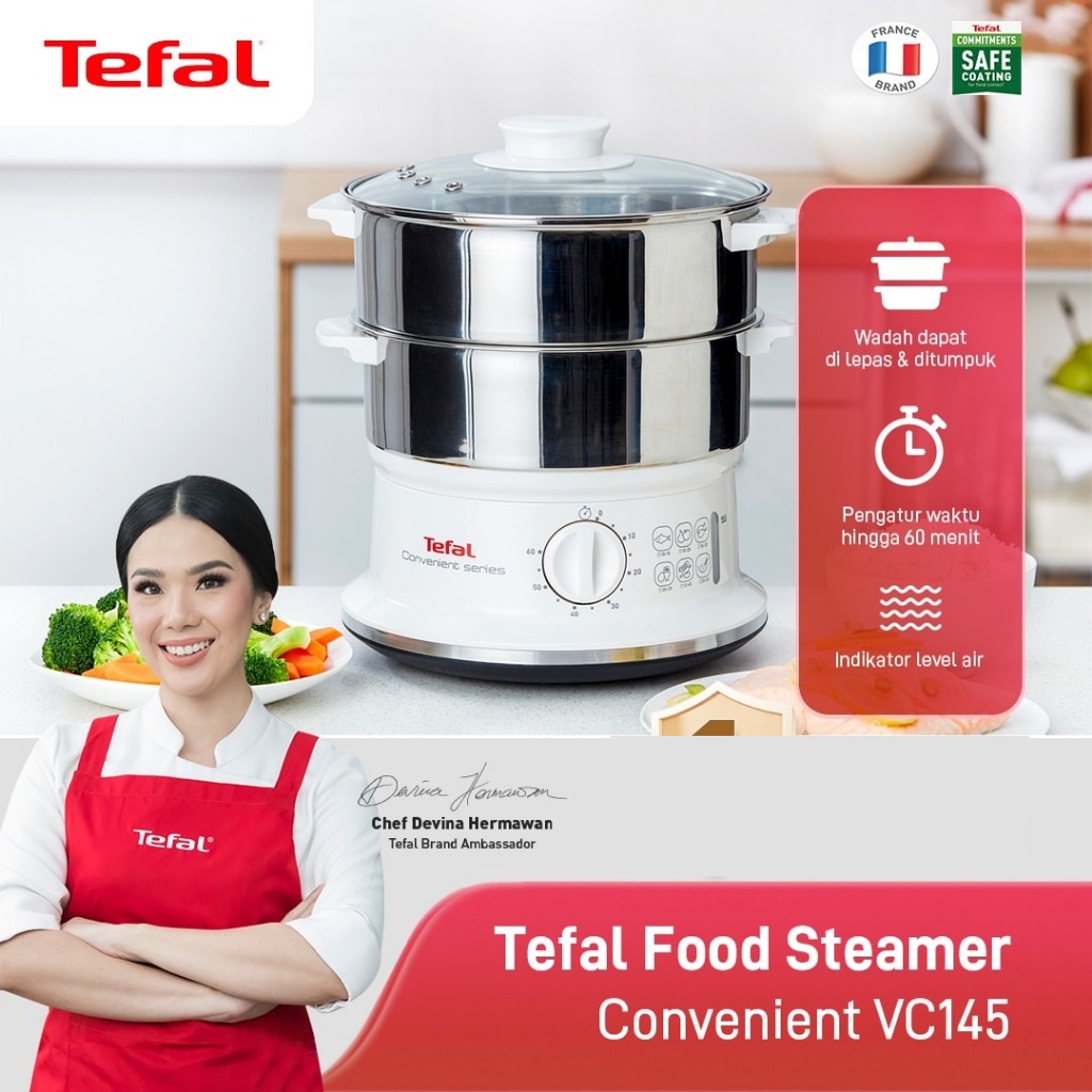 [Mall] Food Steamer Stainless Tefal 6 Liter VC145 / Pengkukus Masakan Elektrik [FREE Wokpan 16cm]