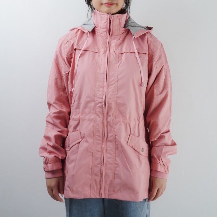 MUSTEVANS JAKET HOODIE PARASIT PARASUT PARKA WATERPROOF WANITA PINK