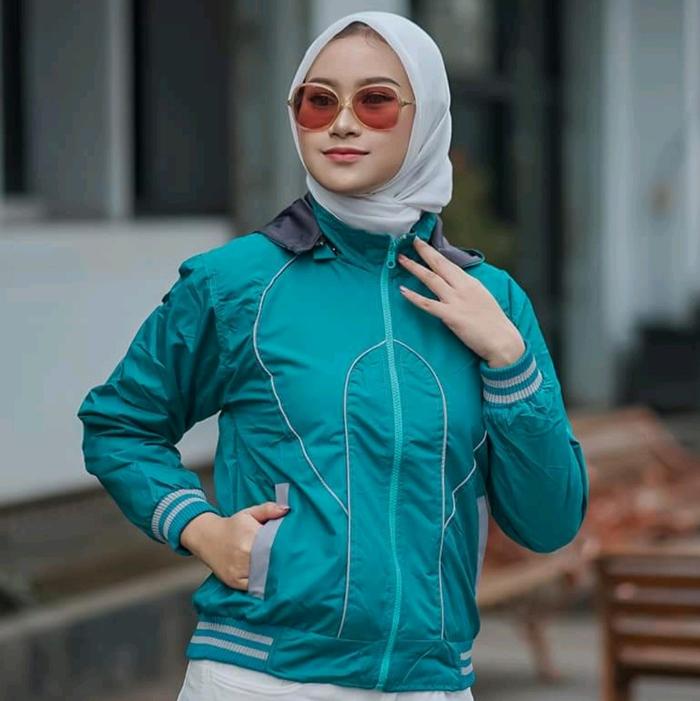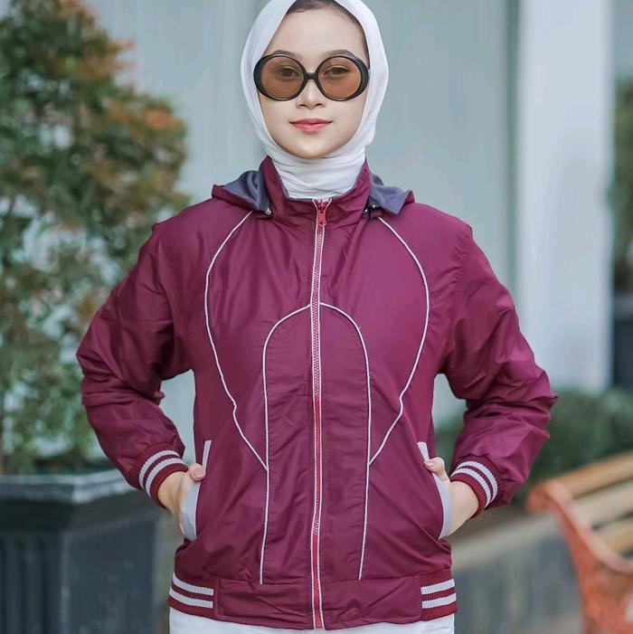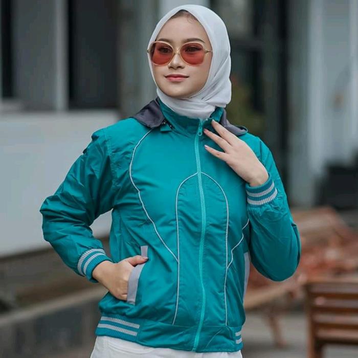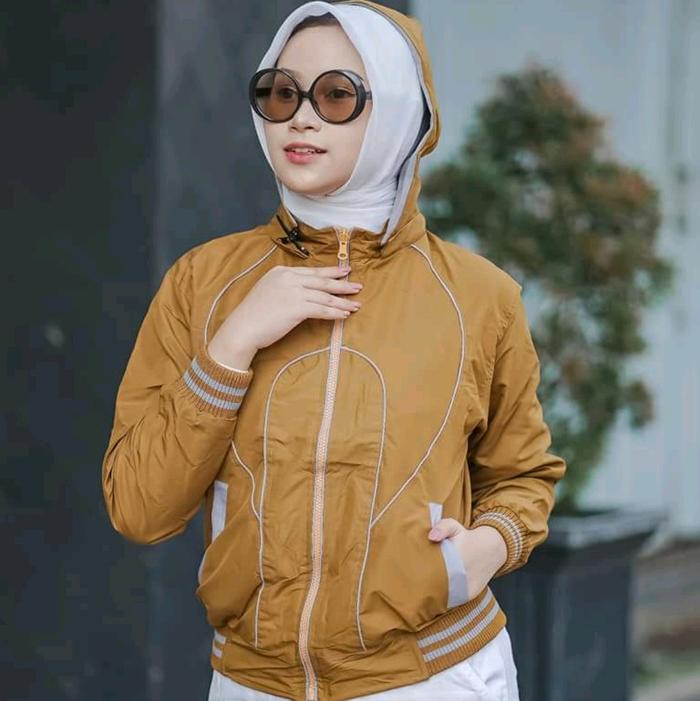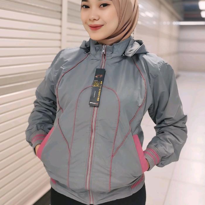 jaket BB wanita 4423 Polos Slim-fitting Parasut Waterproof Parka Biru Coklat Panjang Nyaman bomber zipper crop hangat