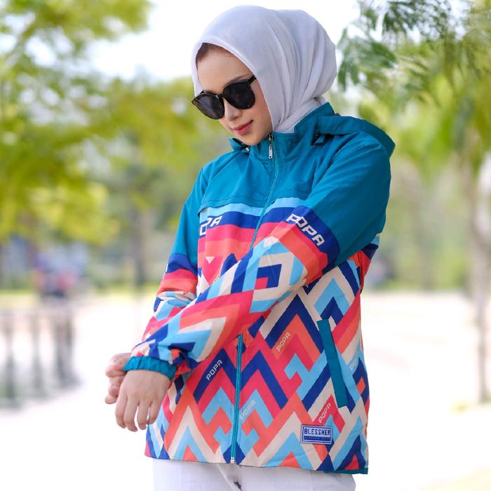 Jaket Wanita Parka Waterproof POPA Motif Printing Sublime blazer jaketantiair