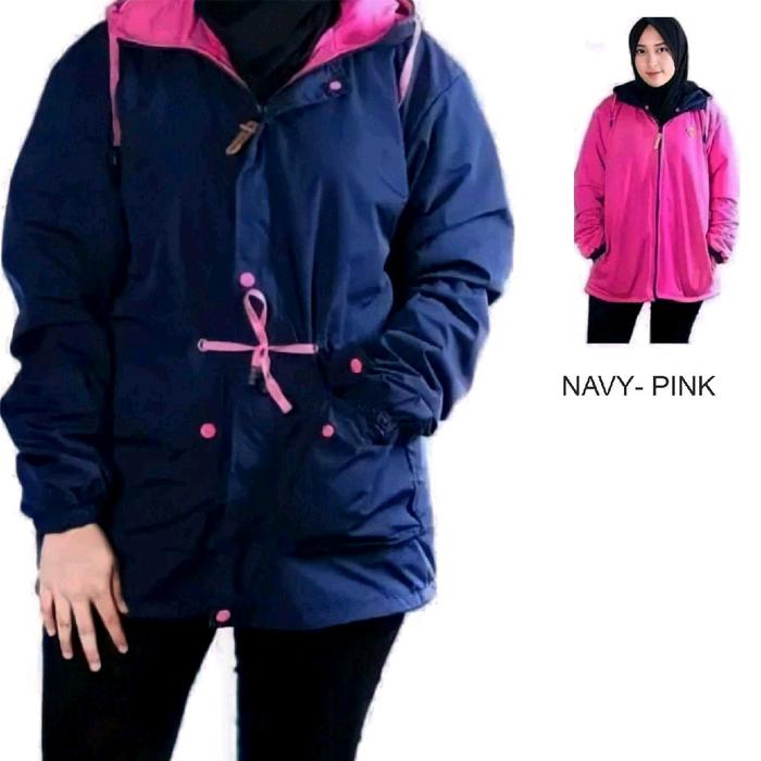Jaket Parka Bolak Balik 2in untuk Wanita - Bahan Luar Despo, Fleece/Sweater, Ukuran L-XL-XXL - Kantong - Panjang, Cewek
