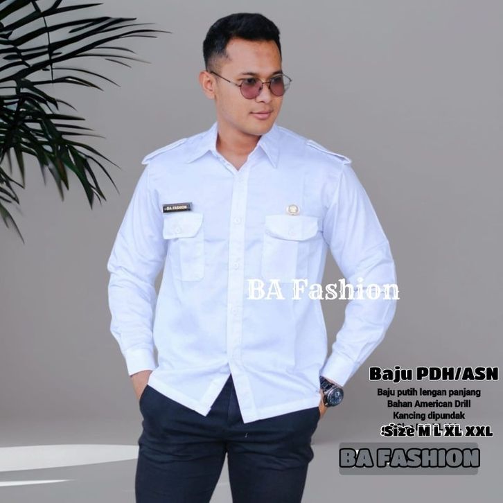 Baju Pns Baju putih pdh pns asn pppk dinas seragam putih krah hitam Seragam PPPK PDH Outdoor / Lapangan / PDL lengan p