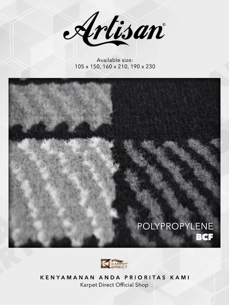 Karpet Lantai Motif Minimalis Ukuran 160x210 Cm Warna Hitam Puith Nyaman Dan Anti Slip - Kode 43-2530