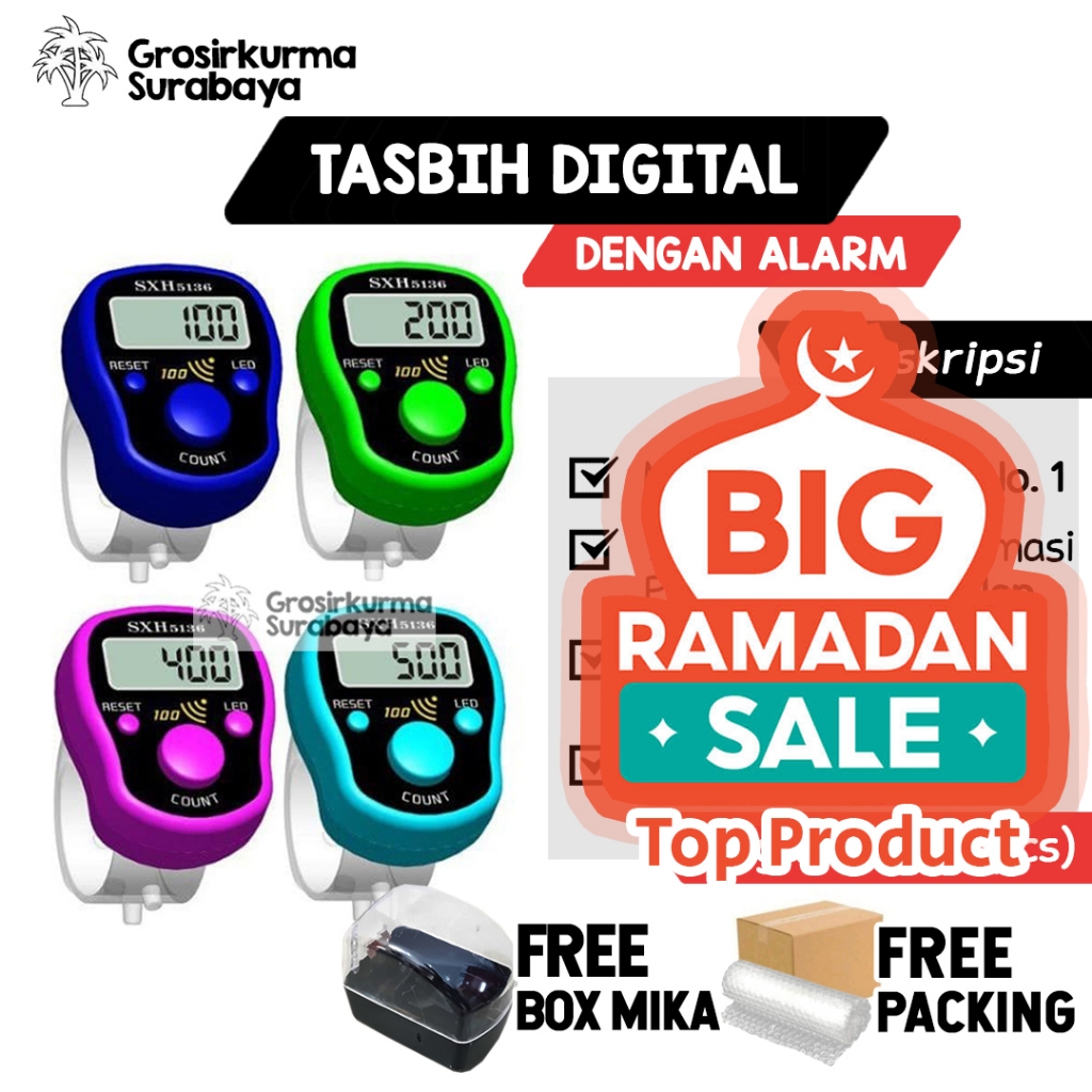 1 LUSIN (12 Pcs) Tasbih Digital Mika LED & ALARM BUZZER Model Miniatur Arab Sholat Souvenir Nikah