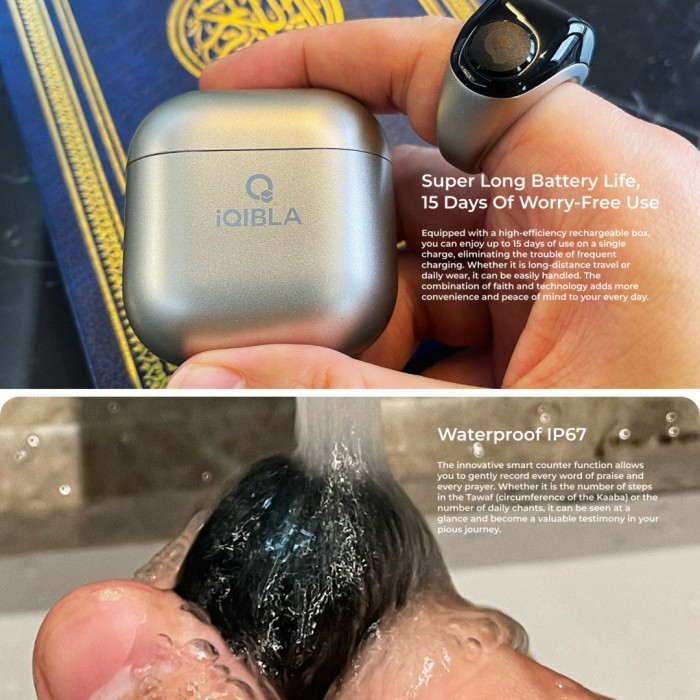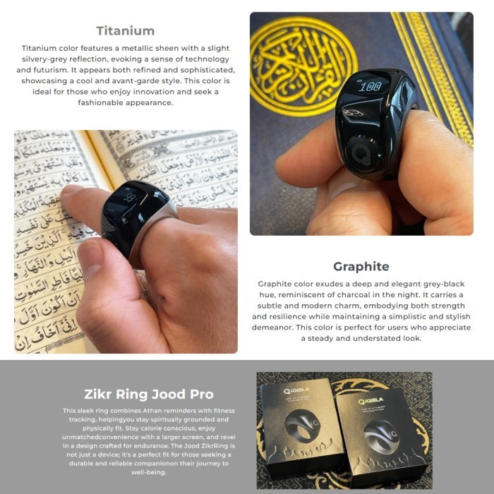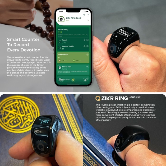iQibla Zikr Ring Jood Pro J01 Pro | Cincin Tasbih Digital | Hitung Zikir Harian Muslim Modern | Baterai Tahan Lama | Bon