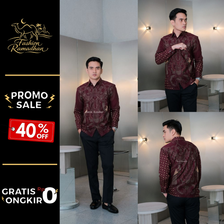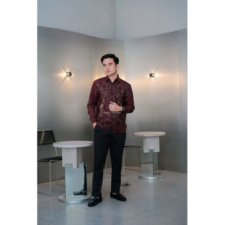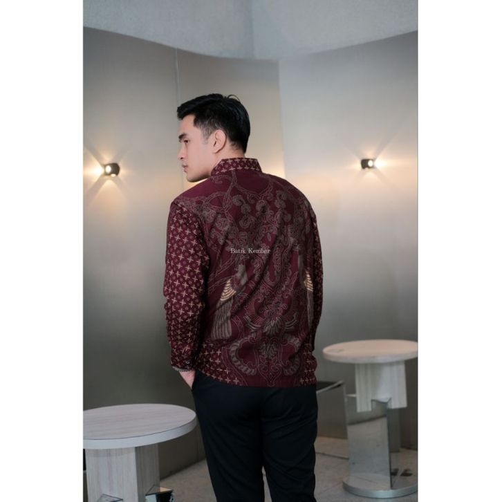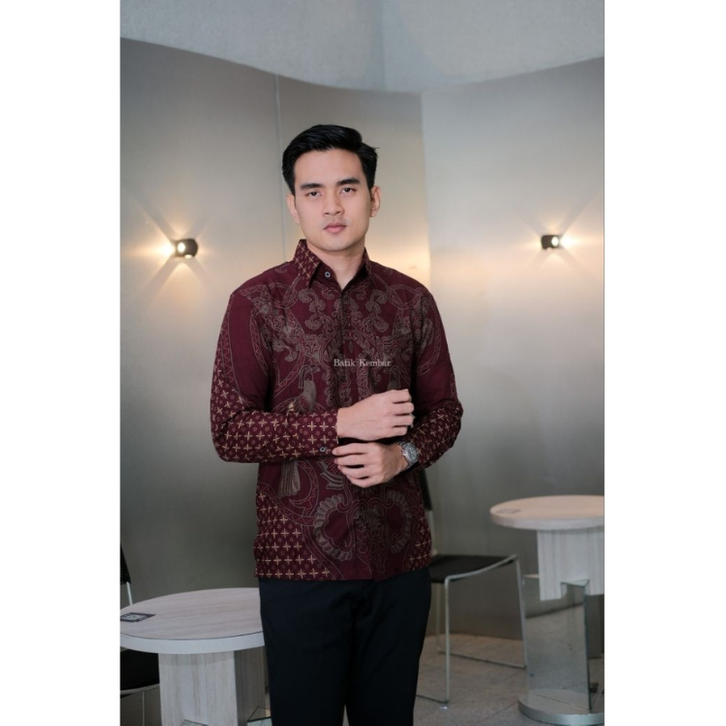 Batik Pria Lengan Panjang Motif Kenari Merah Reguler Baju Batik Pria Kain Katun Premium Lapisan Furing Baju Lebaran 2026