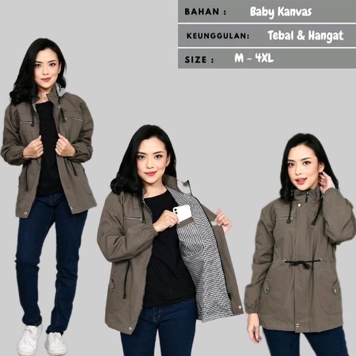 Jaket Wanita Parka Kanvas Premium Model Trendy Big Size M-4XL Tebal dan Hangat Atasan