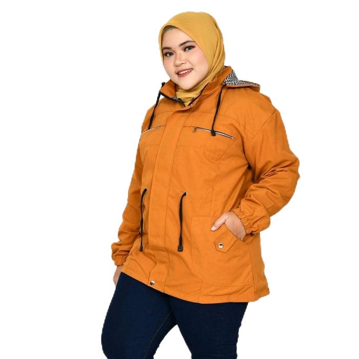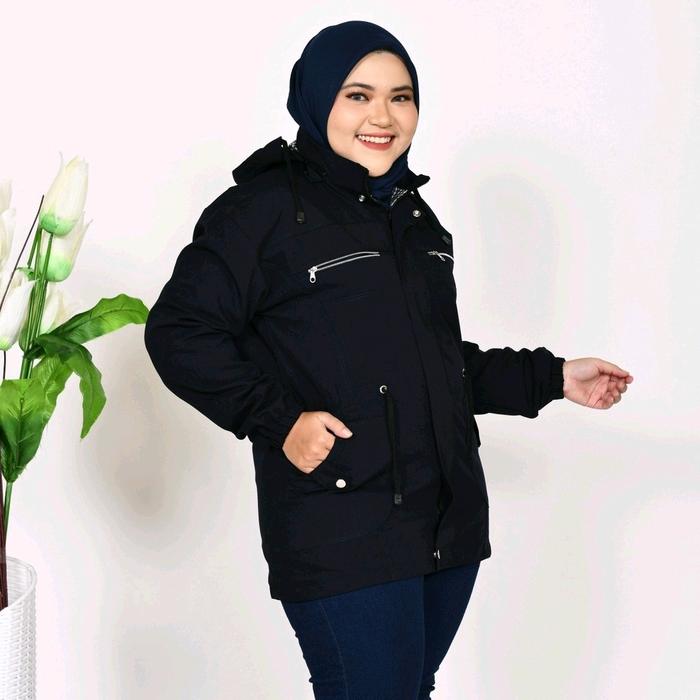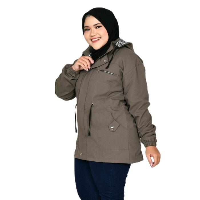 Jaket Parka Wanita Big Size XXL - 3XL - 4XL Bahan Kanvas Tebal Panjang Kancing