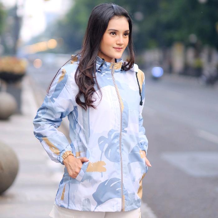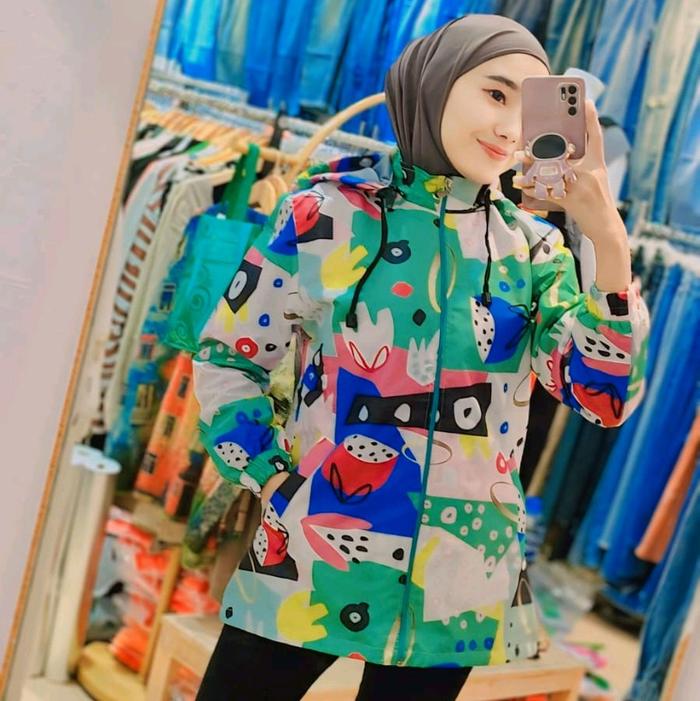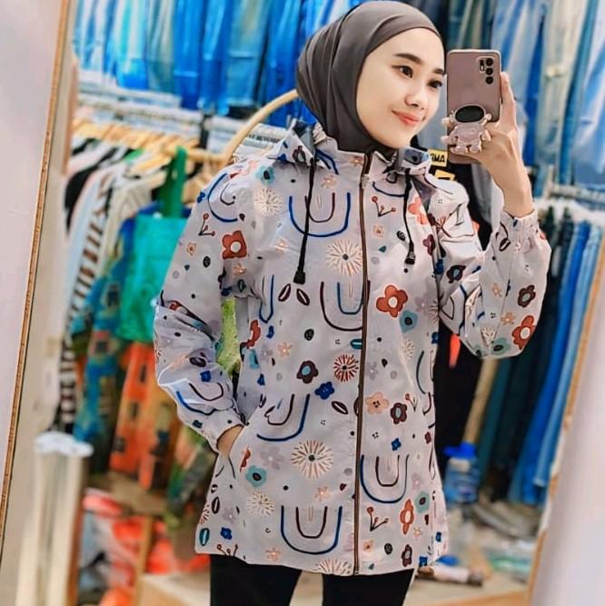 Parka jaket wanita fullprinting Slim-fitting Motif Panjang Waterproof Parasut Outdoor Motor Nyaman Windbreaker
