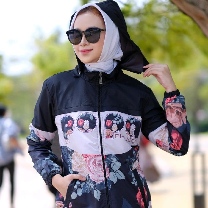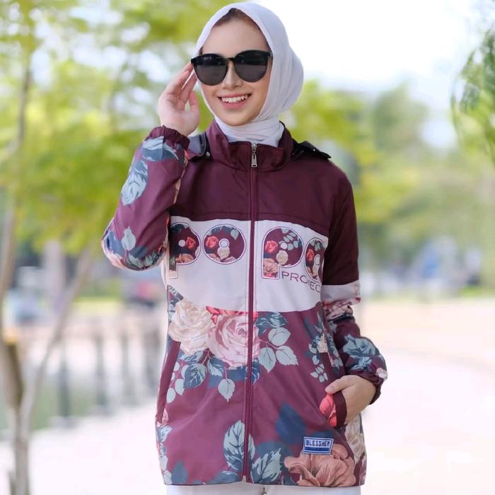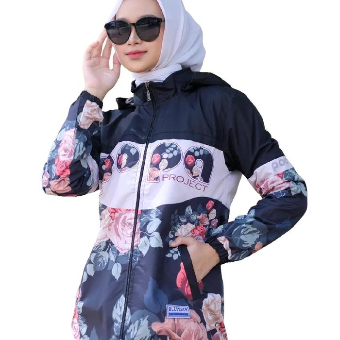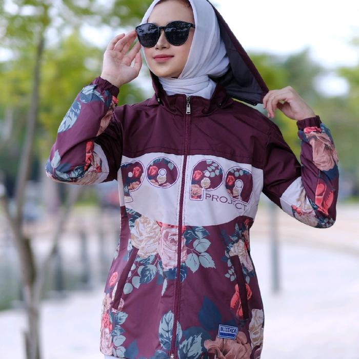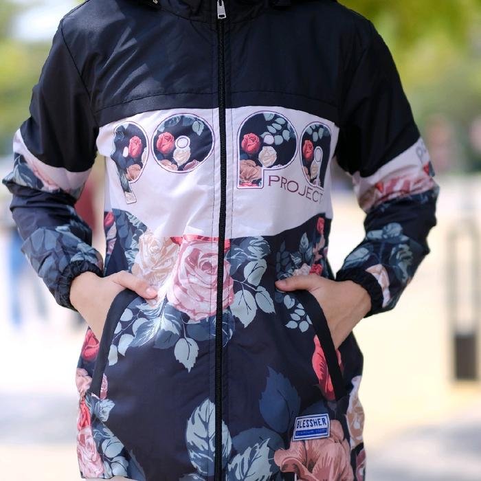 Jaket Parka Popa Printing Bunga Wanita Slim-Fitting Waterproof - sunmori