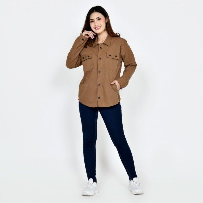 EMOLINE Jaket Semi Parka Wanita Women Outwear Katun Premium Cokelat