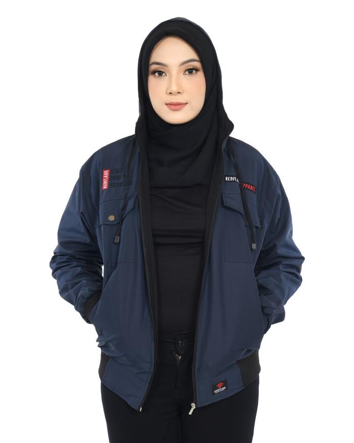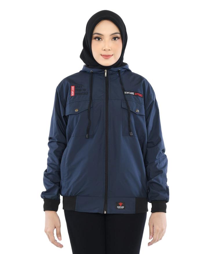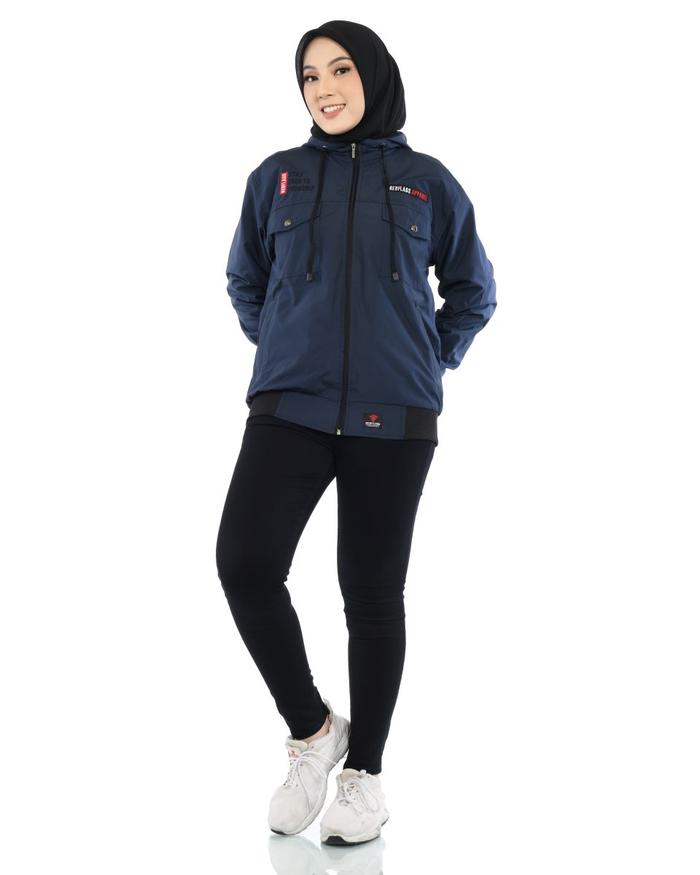 Jaket Wanita Parasut Waterproof Semi Parka Big Size Sangat Nyaman Dipakai Semua Musim Cream Tangan Panjang Cewek