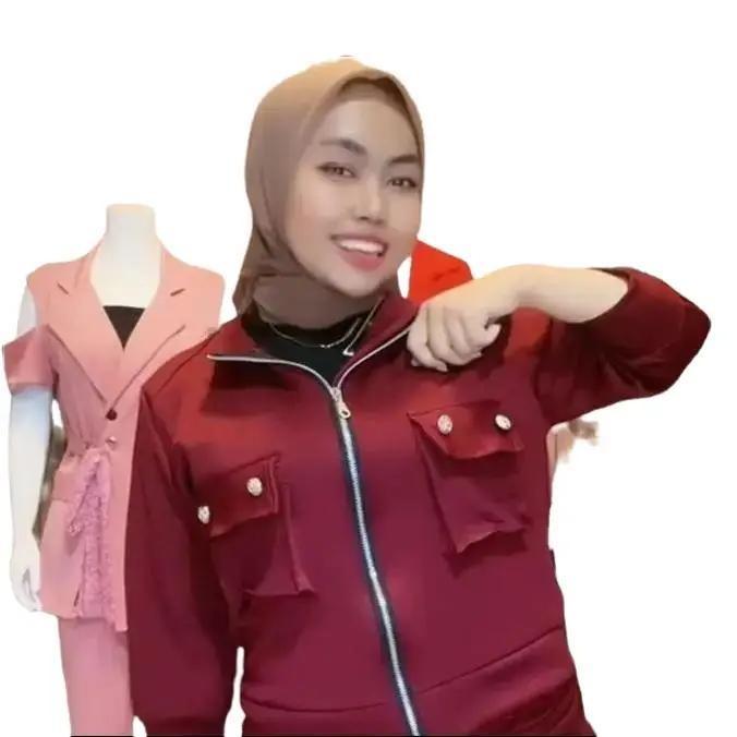 New Atasan Bomber bahan scuba premium polos Jaket Wanita Casual Tebal Blazer Parka Baju Cewek