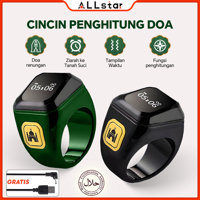 Cincin Tasbih Digital Mini Led Alat Hitung Dzikir Perlengkapan Ibadah /Smart Tally Counter Penghitung Zikir Tasbeh Jari