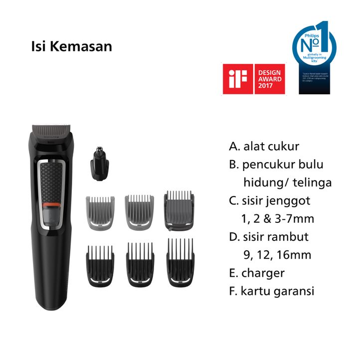 Philips | Multigroom 3000 | Alat Cukur Electric | Jenggot Kumis Jambang Rambut | 8-in-1 | MG3730/15