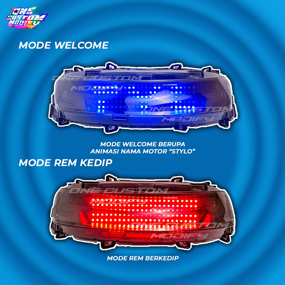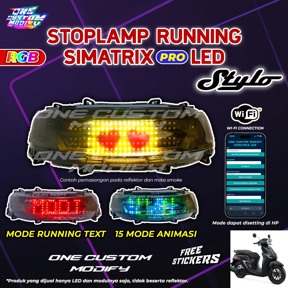 Stoplamp Running Text Animasi Stylo Simatrix Pro RGB Lampu LED Rem Variasi Motor One Custom Modify