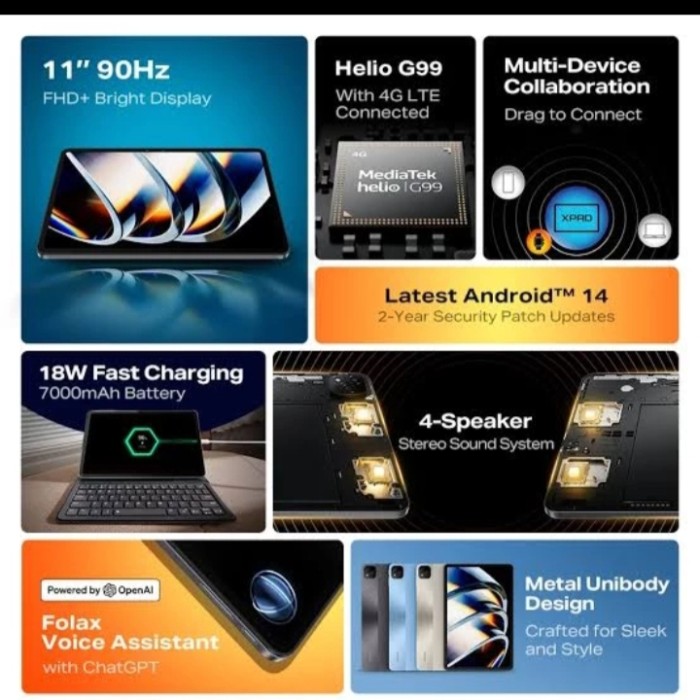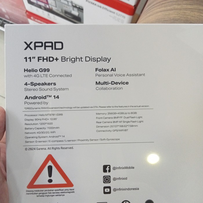 INFINIX X TAB 4G LTE RAM 8/256GB MEDIATEK HELIO G99 BERGARANSI RESMI SIM CARD