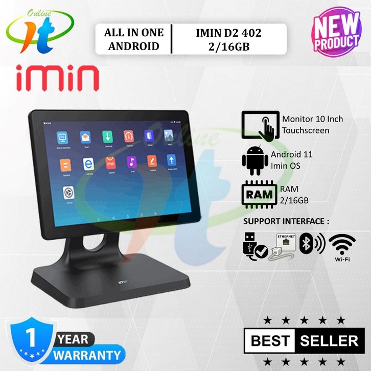 Desktop Mesin Kasir 10" iMin D2 402 2G/16GB Android 11 POS All In One D2-402 Touchscreen Single