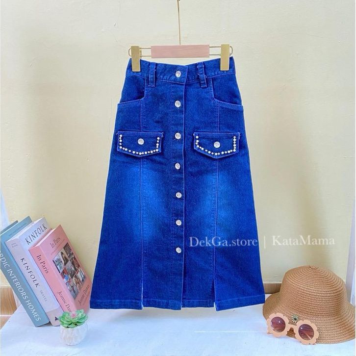 ROK JEANS PANJANG ANAK PEREMPUAN ROK BAWAHAN ANAK JEANS PREMIUM USIA 3TH-13TH