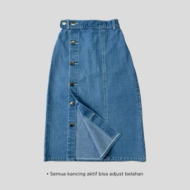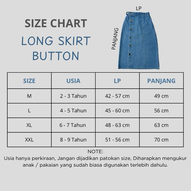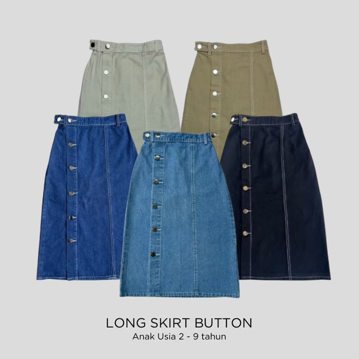 Rok Span Anak Perempuan Jeans Long Skirt Button Highwaist Panjang Rok Jeans Anak Kancing Usia 2-9 Tahun