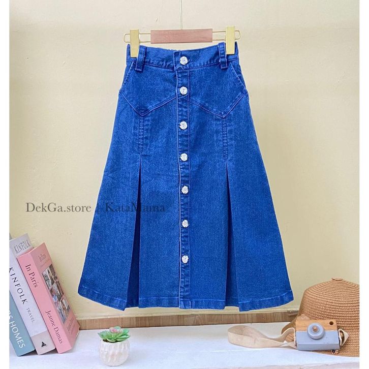 Rok Panjang Anak Perempuan Rok Jeans Anak Korean Style Blue Denim Rok Anak Perempuan Muslim Usia 3 Tahun-Anak Tanggung