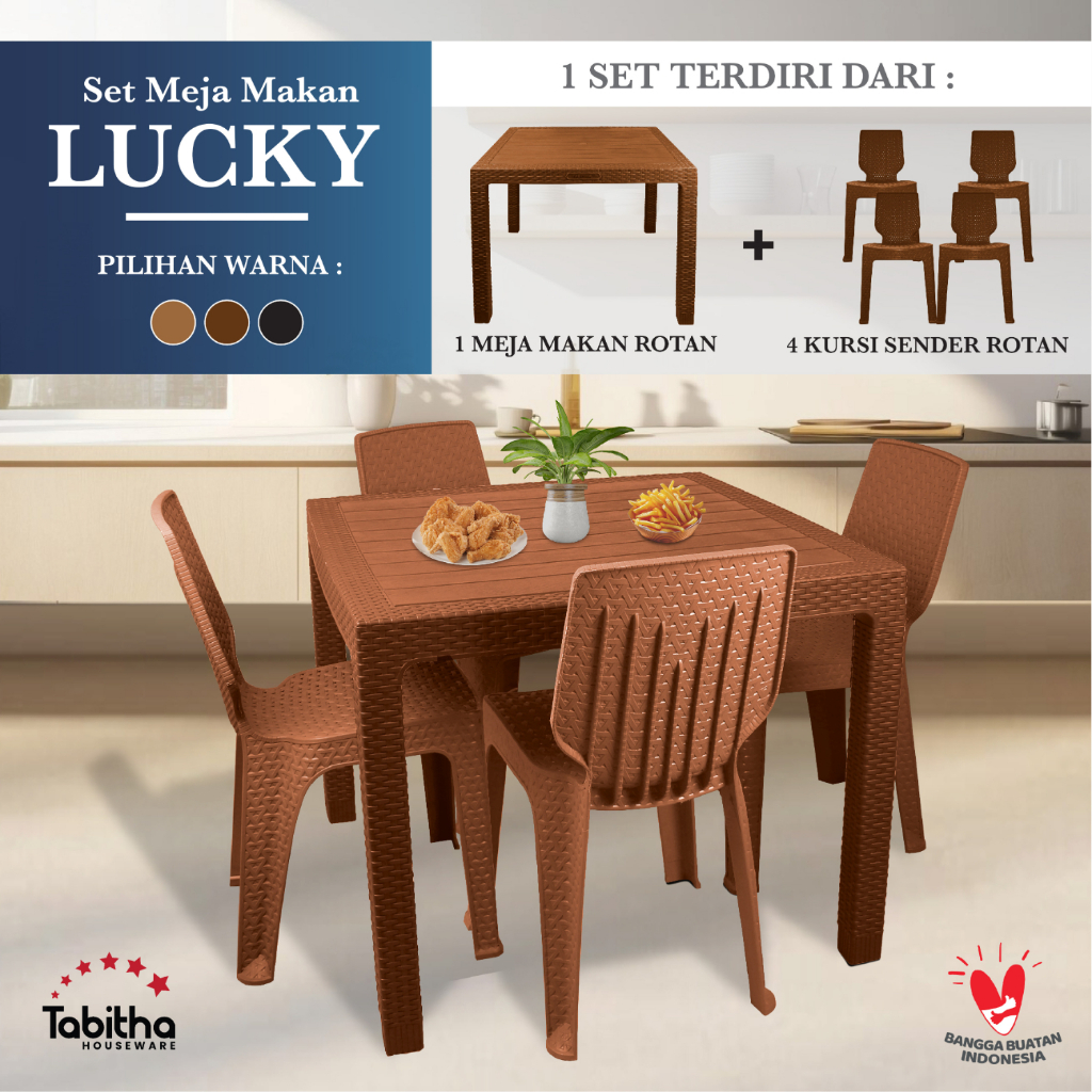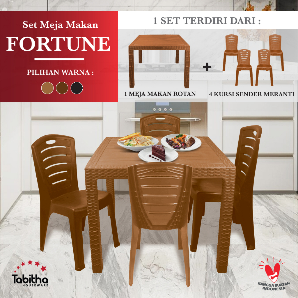 Paket Meja Cafe / Restoran / Meja Makan Plastik dan Kursi Outdoor Motif Rotan