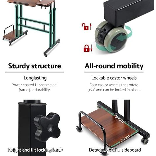 E-TIFE Meja Kerja Adjustable meja belajar portable dewasa meja roda serbaguna Meja rangka besi Meja laptop meja lapto