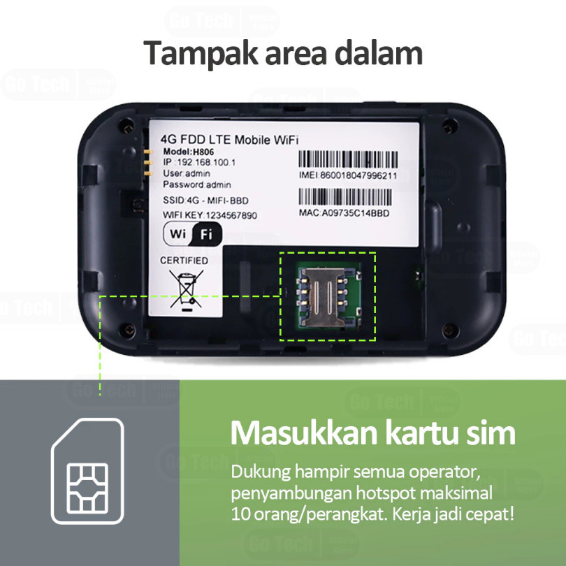 Go Tech - H806 Wireless Router 4G LTE Mobile Broadband WiFi Mini Modem 150Mbps Hingga 10 Perangkat GT