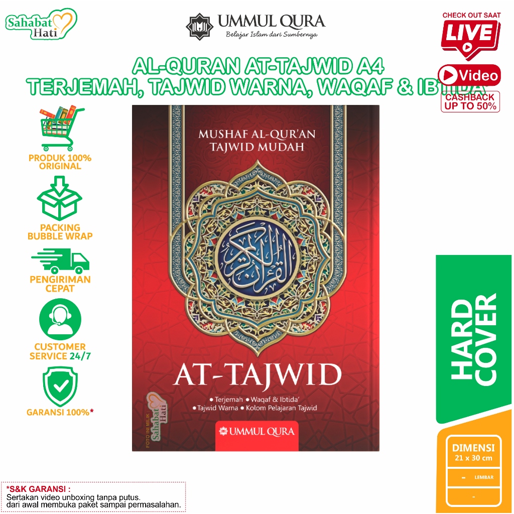 Al-Quran At Tajwid A4 HC JUMBO MERAH Al-Quran Terjemah dan Tajwid Warna Original - Ummul Qura -