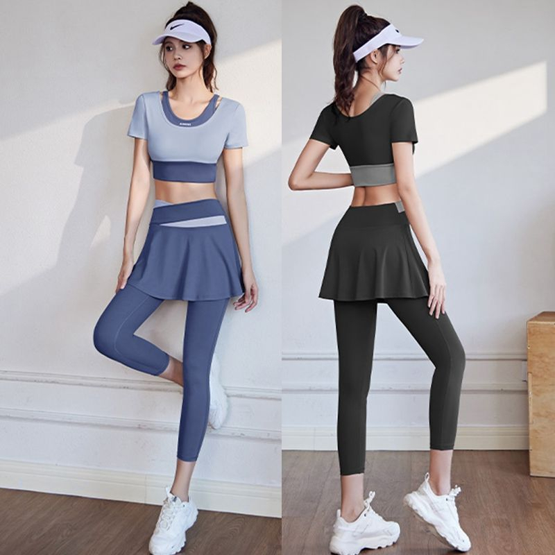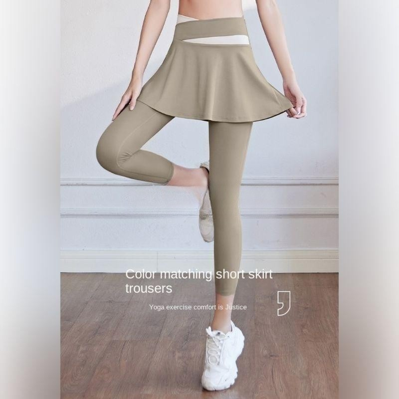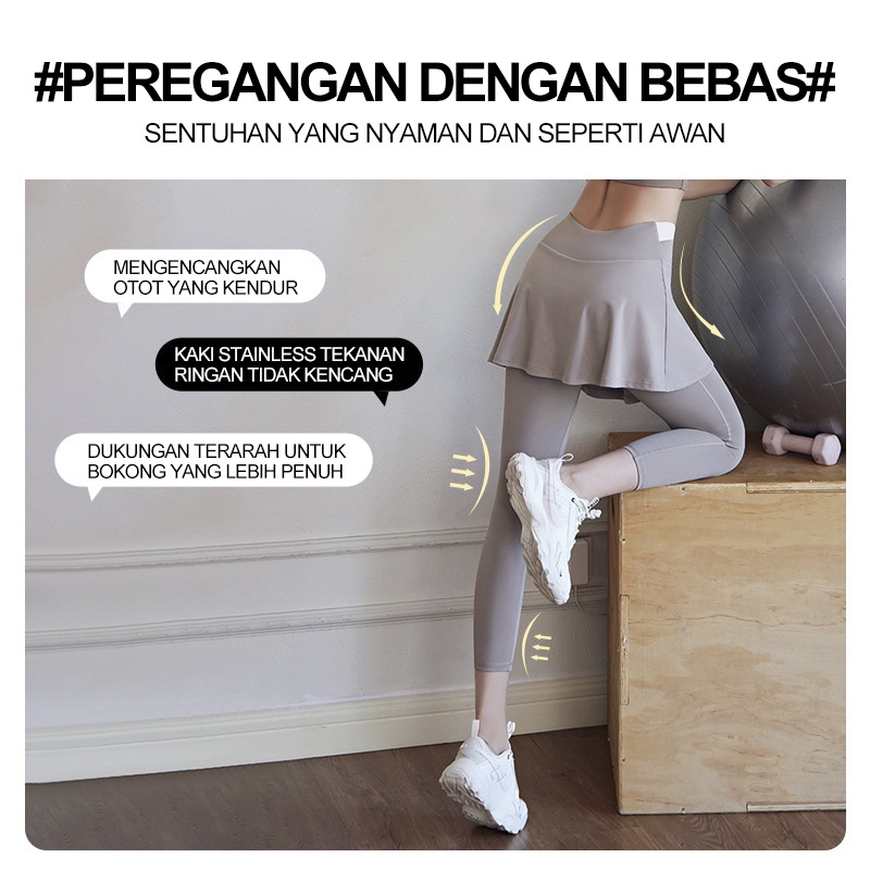Legging Celana Olahraga Wanita Rok Celana Skirt High Waist Polos Yoga Dua Lapis Gym Tennis Running Sport