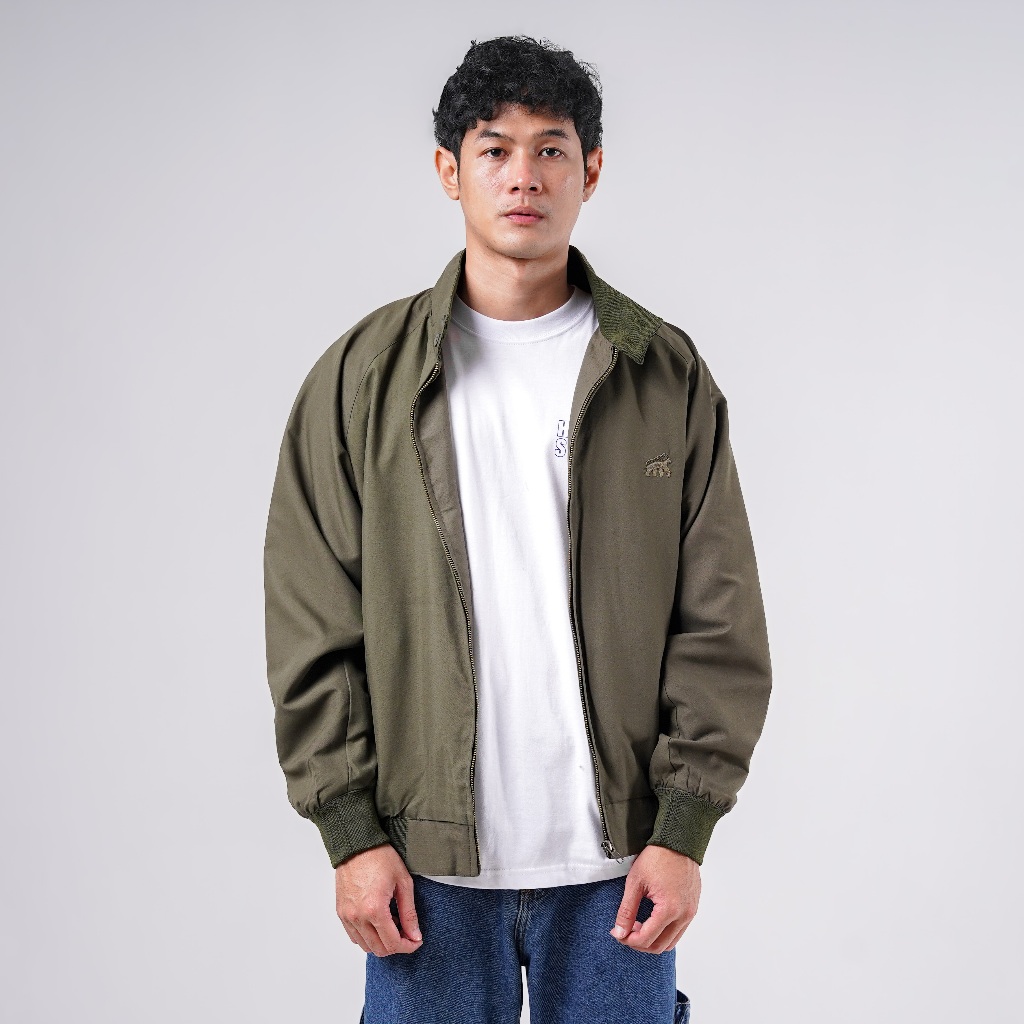 jaket pria keren terbaru distro parasut motor House of Smith Jaket Harrington Pria Hangor Olive house of smith official