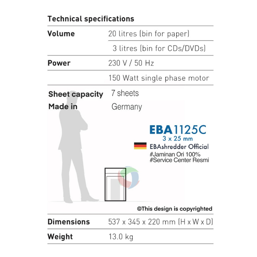 EBA 1125 C (3 x 25 mm) Mesin Penghancur Kertas Cross Cut Made in Germany