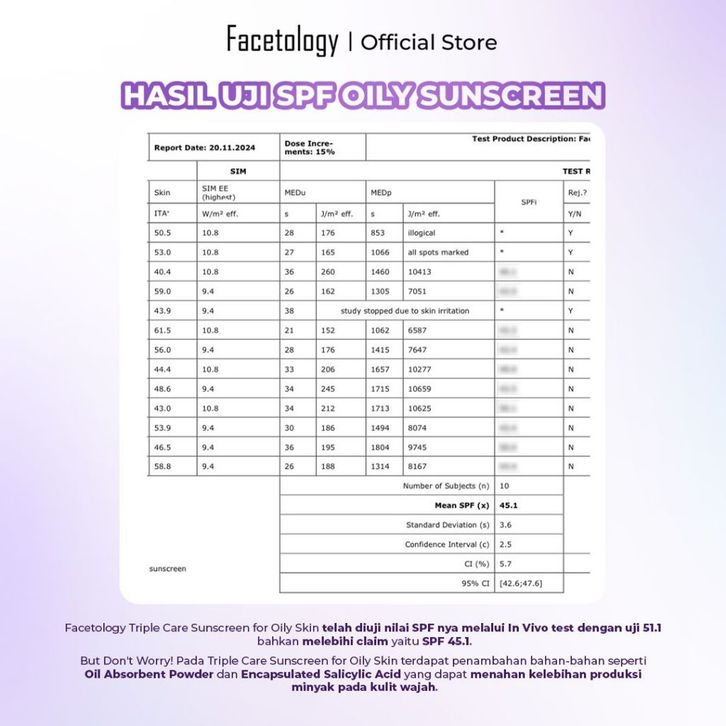 [New Matte Formula] Facetology Triple Care Sunscreen For Acne & Oily Skin SPF 40 PA+++ 40ML
