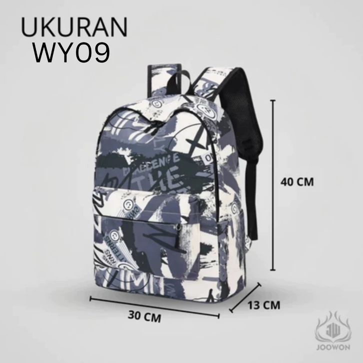 Tas Ransel Motif Abstrak Casual Bahan Nylon Trendy / Tas Sekolah Unisex Terbaru Fashionable - WY10
