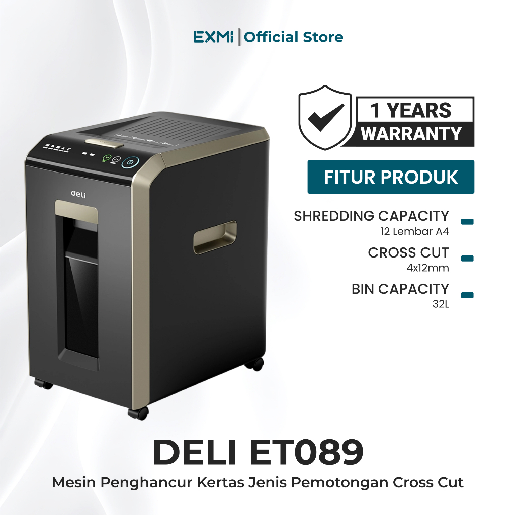 Deli ET089 Paper Shredder | Pengancur Kertas 12 Lembar A4 | Kapasitas 30L | Ukuran Potong 4x12mm