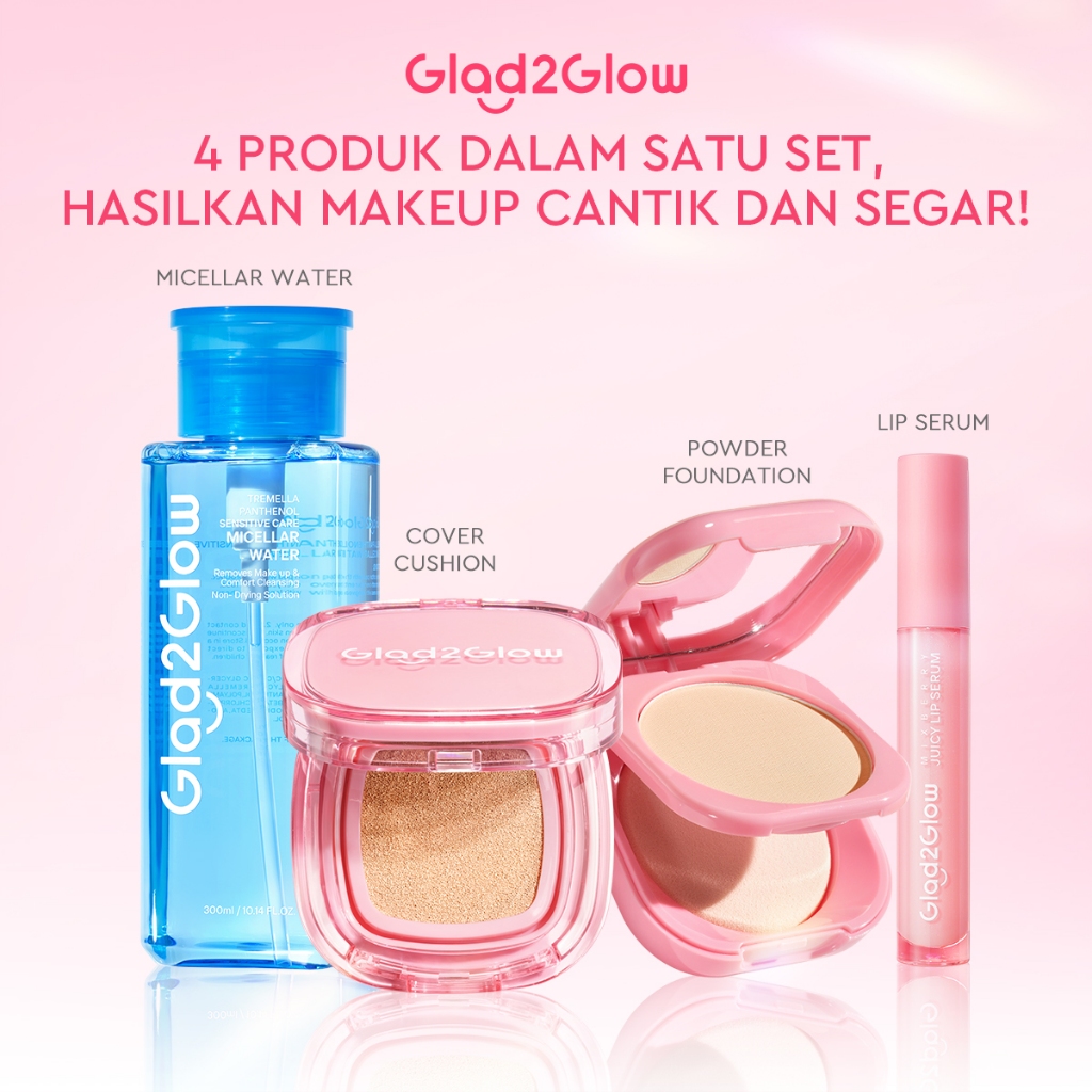 set make up lengkap Glad2Glow Set Makeup Lengkap 4in1 Sensitive Micellar+Water Perfect Blurring Powder Foundation+Cushio