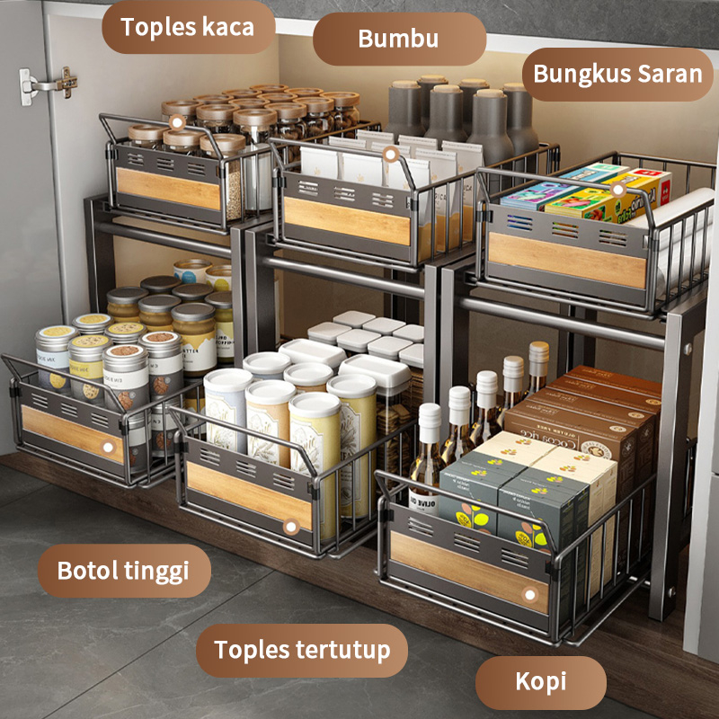 Rak Dapur Bawah Wastafel Rak Kabinet Lemari Dapur Keranjang Geser Laci Rak Tarik Rak