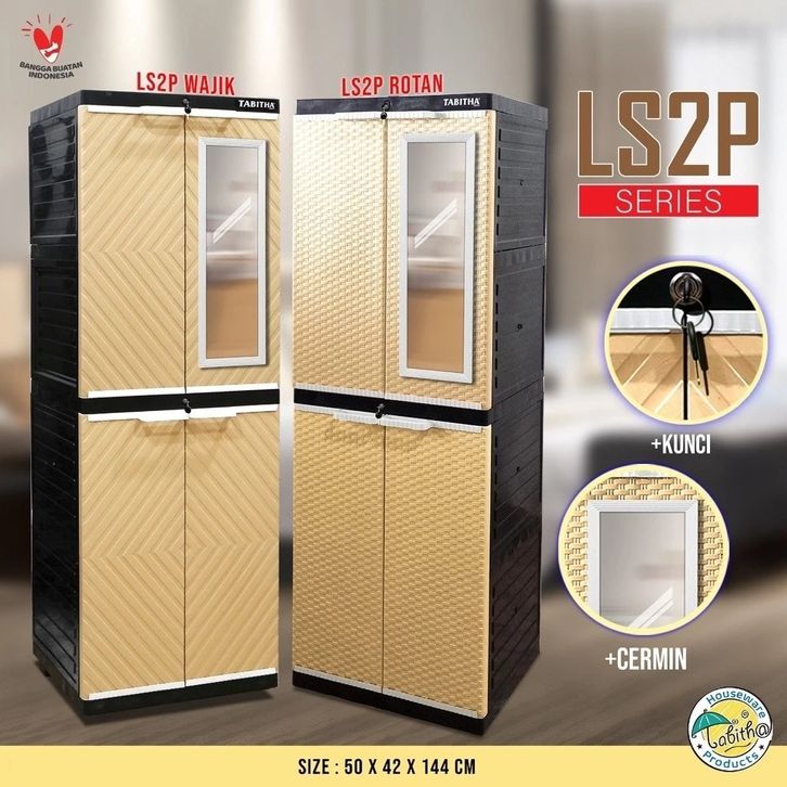 Tabitha Lemari Pakaian Plastik Dengan Laci Lemari 2 Pintu Serbaguna Premium - LS2PL Series