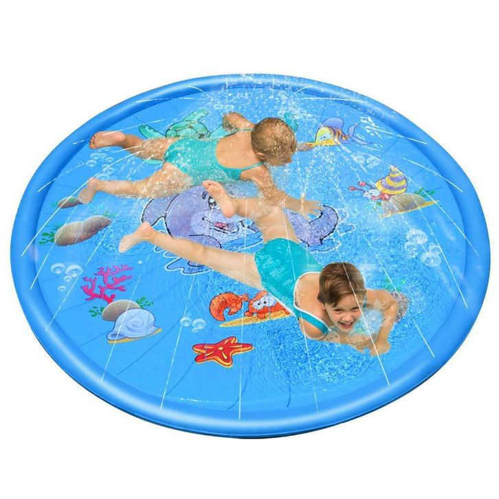 kolam semprot anak air mancur kids water spray mat mainan anak PVC Outdoor Pantai Bermain Game Tiup Semprot Air Bantal