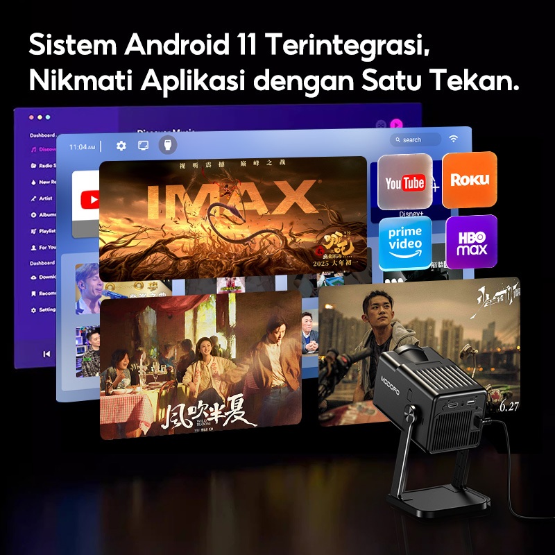 MODOFO K300 PROYEKTOR CERDAS 4K 1080P-INCLUDE HDMI-BLUETOOTH5.0-ANDROID 11-WIFI 6-150ANSI-200'' DISPLAY-360° DAPAT DISES