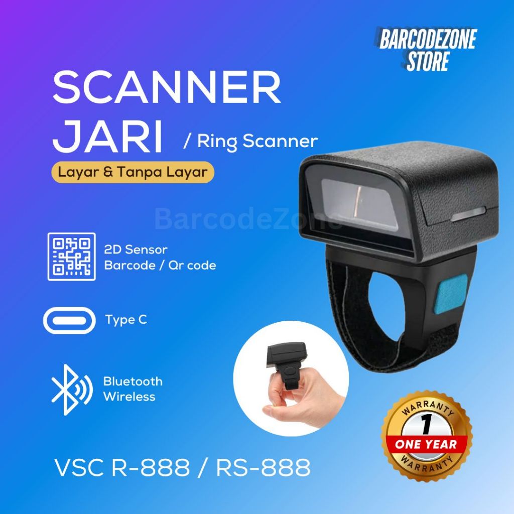 ARE SCANNER RING SCANNER 2D 1D WIRELESS BLUETOOTH VSC RS-888 / VSC R-888 WITH LCD SCREEN
