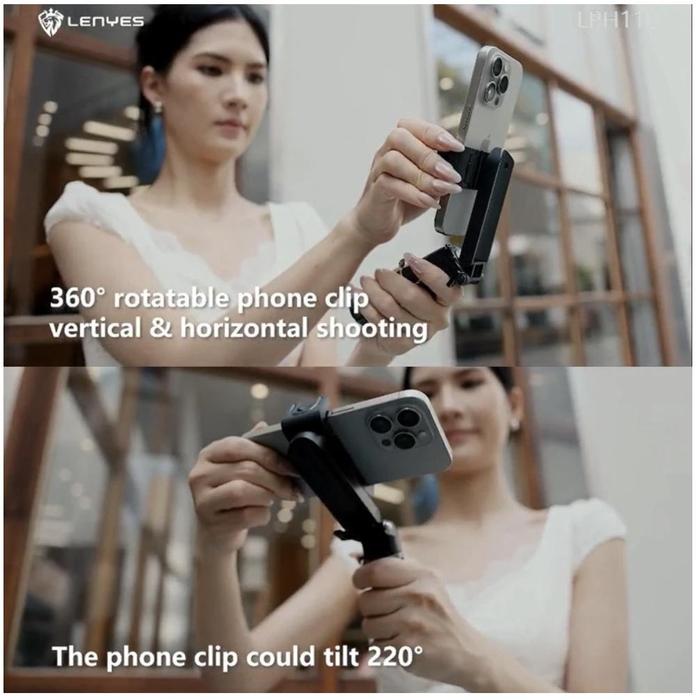 LENYES LPH110 - Mini Grip Tripod Extendable Selfie Vlog Stick Bluetooth Remote + LED Portable Size