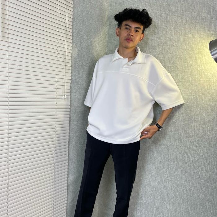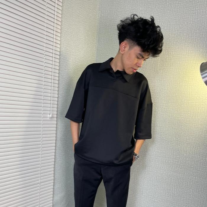 SAYNT BOXY POLO TSHIRT | KAOS POLO SCUBA KERAH POLOS | BOXY FIT SCUBA - HITAM, M