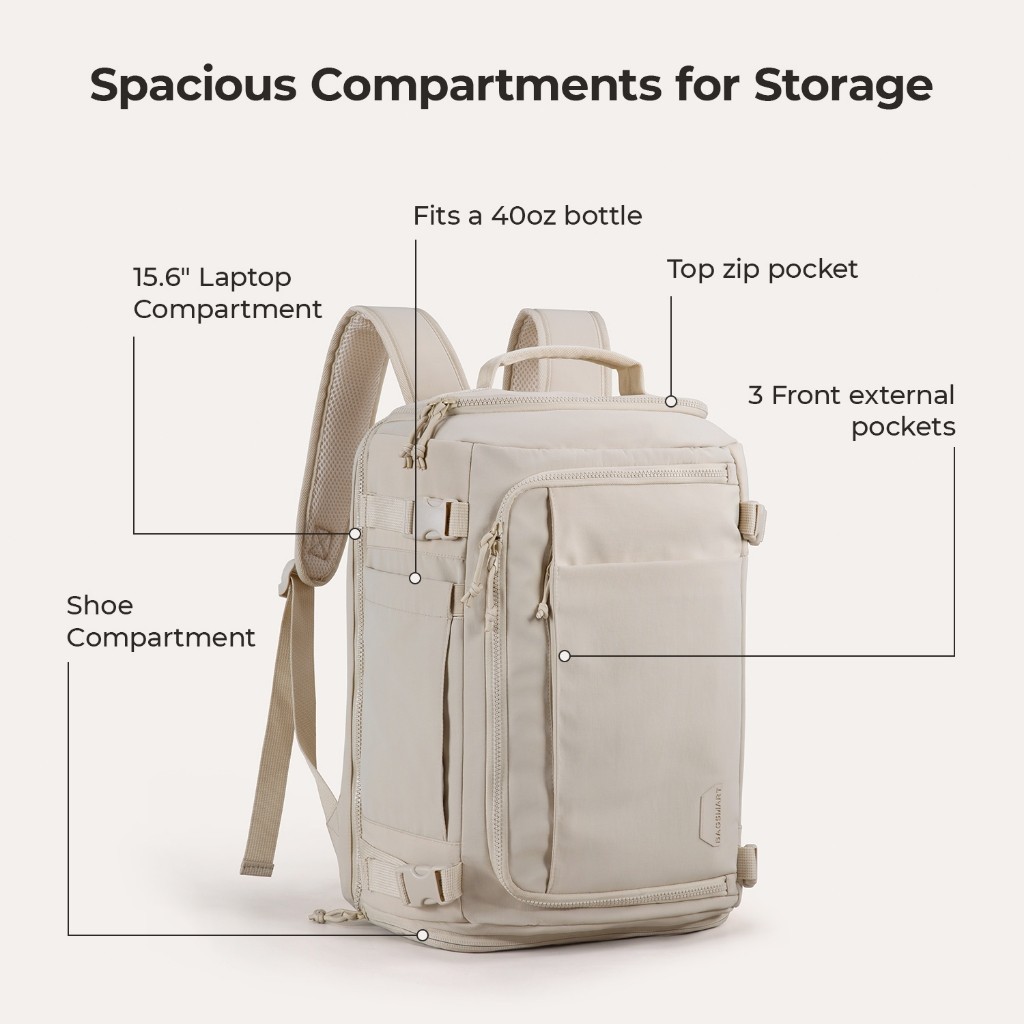 BAGSMART Travel Backpack Tas 15.6Inch Laptop 28L WaterPR0of Carry On Daypack Travel Duffel Bag